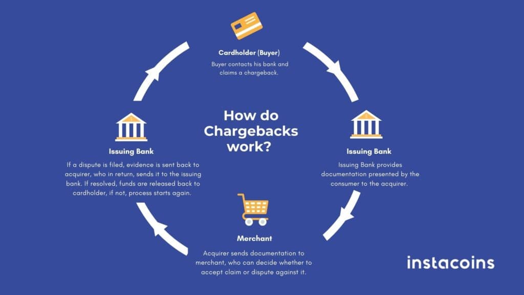 - The process starts with the buyer contacting his bank (issuing bank) and claims a chargeback.